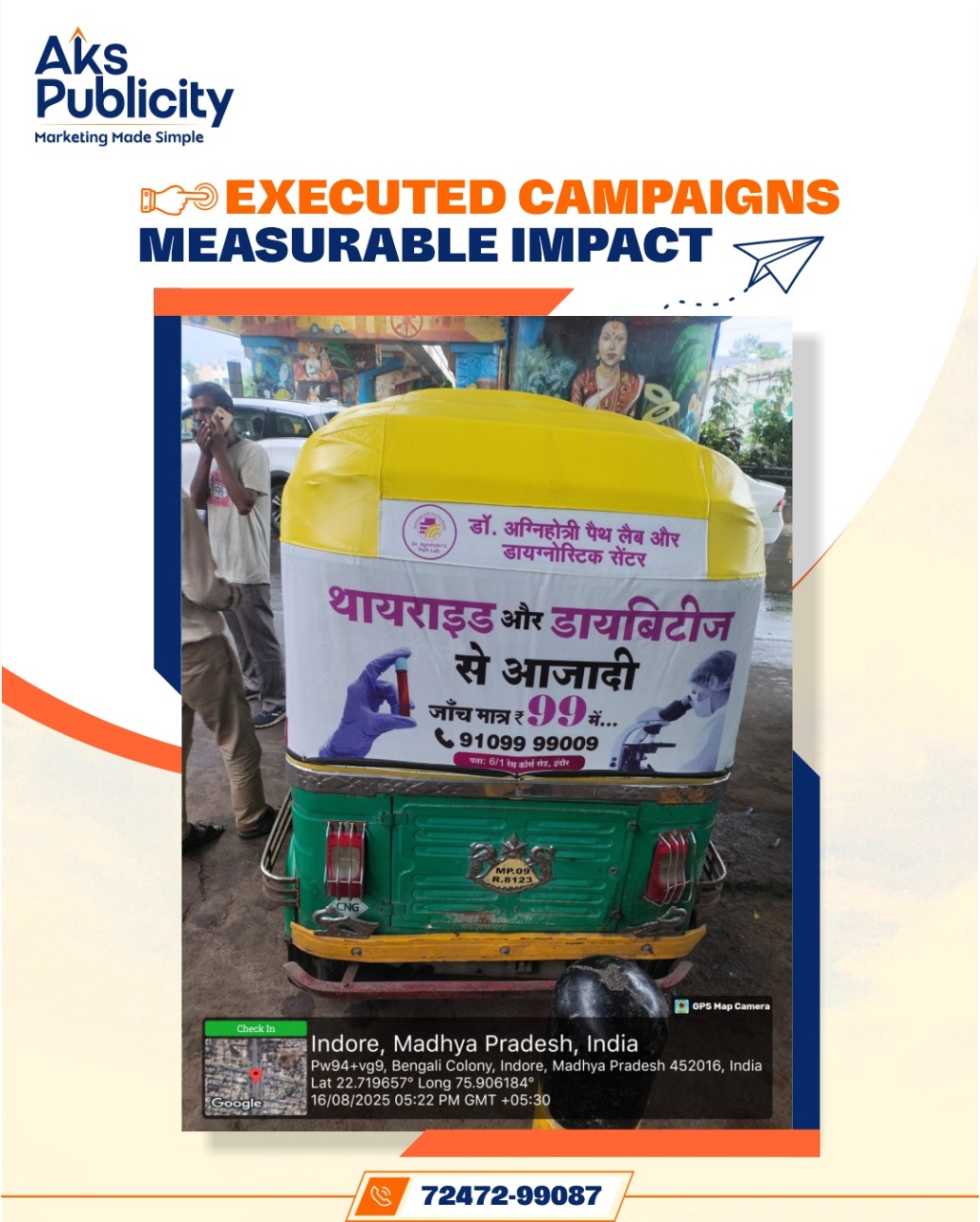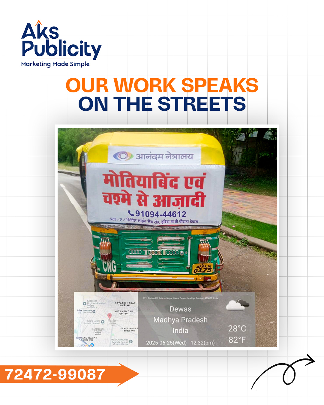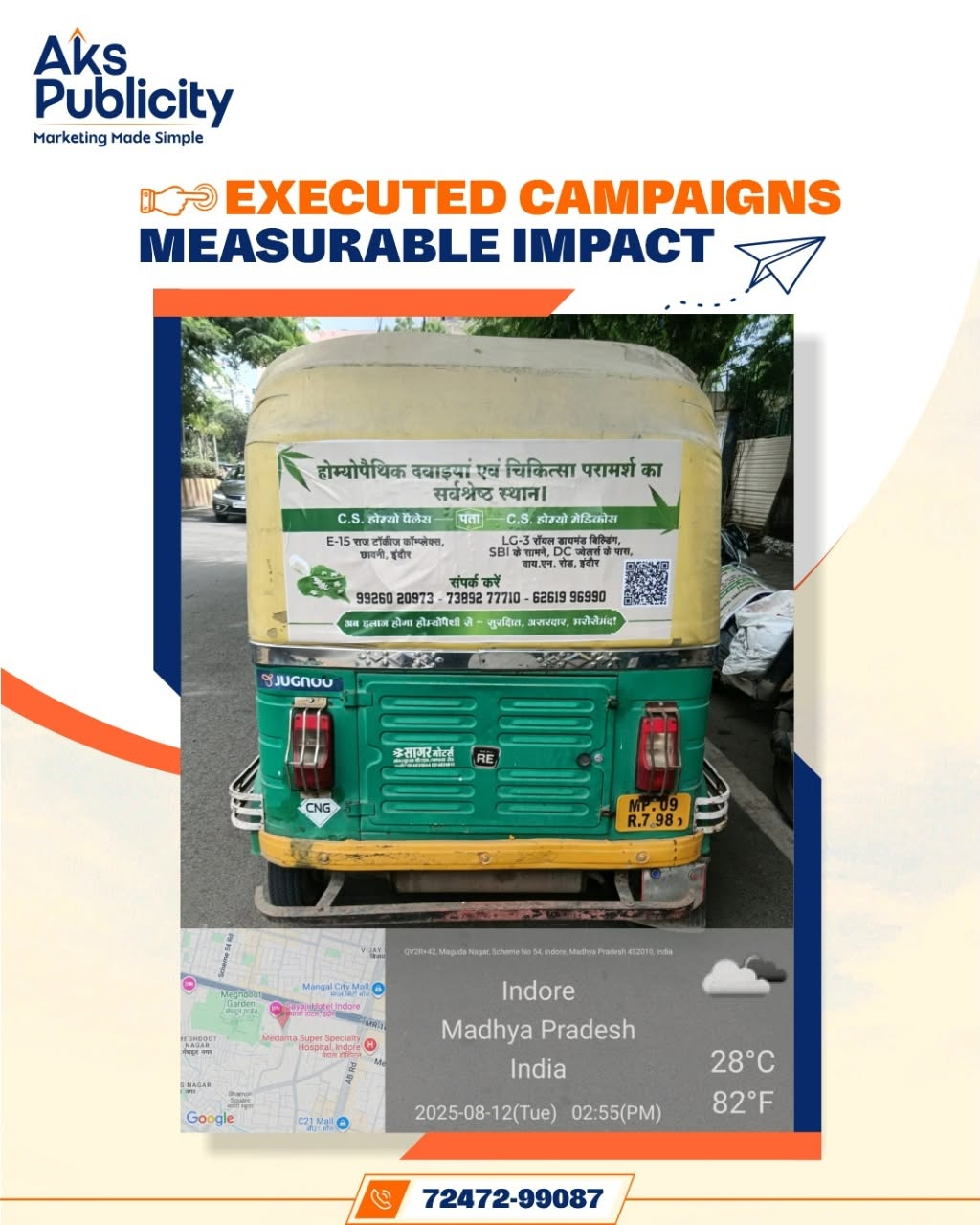 At AKS Publicity, we don’t just place ads — we design journeys. From innovative auto hood advertising to impactful marketing, our campaigns ensure your message travels through markets, signals, and streets, creating impressions that stick long after the ride ends.